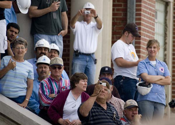 Residents of Greensburg gather on the courthouse steps to get a closer look at President Bush on Wednesday.