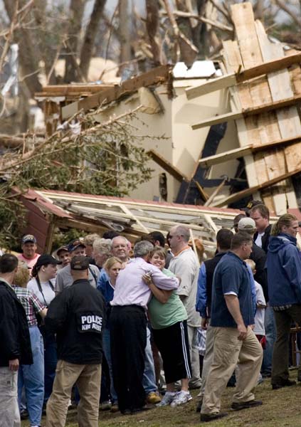 President George Bush offers support to residents of Greensburg on Wednesday. Bush flew into the tornado-ravaged town and spent time with the survivors.