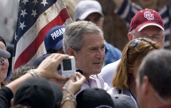 President Bush visits with residents of Greensburg.
