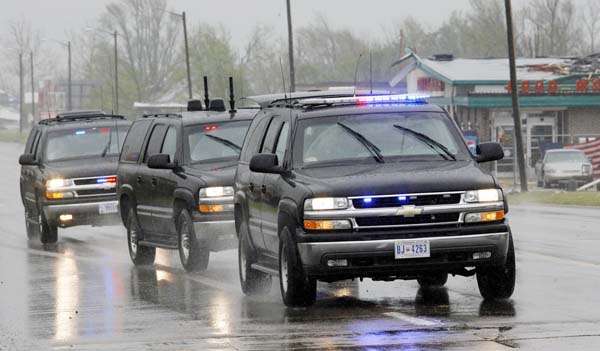 President Bush's motorcade drives west on U.S. 54 in Greensburg.